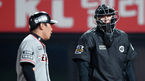 [OSEN=수원, 이동해 기자] 18일 오후 수원 케이티위즈파크에서 '2019년 신한은행 마이카 KBO리그' KT 위즈와 한화 이글스의 경기가 진행됐다.8회초 1사 1,2루 한화 대타 정근우가 삼진아웃 당한 후 이계성 주심에게 항의하고 있다. / eas