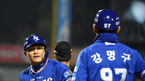 [OSEN=대전, 지형준 기자] 19일 오후 대전 한화생명이글스파크에서 ’2019 신한은행 MY CAR KBO 리그’ 한화 이글스와 삼성 라이온즈의 경기가 열렸다.4회초 1사 1루에서 삼성 박계범이 우전안타를 날리고 강명구 코치와 기뻐하