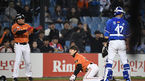 [OSEN=대전, 지형준 기자] 19일 오후 대전 한화생명이글스파크에서 ’2019 신한은행 MY CAR KBO 리그’ 한화 이글스와 삼성 라이온즈의 경기가 열렸다.3회말 무사 1루에서 삼성 박계범이 한화 1루주자 정은원을 오선진의 희생번