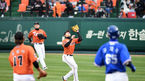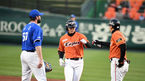 [OSEN=대전, 지형준 기자] 19일 오후 대전 한화생명이글스파크에서 ’2019 신한은행 MY CAR KBO 리그’ 한화 이글스와 삼성 라이온즈의 경기가 열렸다.1회말 무사에서 한화 선두타자 정은원이 우전안타를 날리고 고동진 코치와