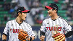 [OSEN=잠실, 박준형 기자] 20일 오후 서울 잠실구장에서 ‘2019신한은행 MY CAR KBO리그' LG 트윈스와 키움 히어로즈의 경기가 열렸다.5회초 실점 위기를 병살플레이로 넘긴 오지환과 정주현이 미소 지으며 더그아웃으로 들어가고