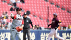 [OSEN=잠실, 지형준 기자] 21일 오후 서울 잠실야구장에서 ’2019 신한은행 MY CAR KBO 리그’ LG 트윈스와 키움 히어로즈의 경기가 열렸다.3회초 1사 2루에서 LG 김민성이 키움 박정음의 3루땅볼에 1루로 악송구를 범하고 있다. 악