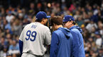 [OSEN=밀워키(미국 위스콘신주), 최규한 기자] 21일(한국시간) 미국 위스콘신주 밀워키 밀러파크에서 ‘2019 메이저리그’ 밀워키 브루어스와 LA 다저스의 경기가 열렸다.5회말 무사 2루에서 마운드를 방문한 LA 허니컷 코치가