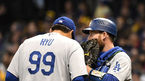 [OSEN=밀워키(미국 위스콘신주), 최규한 기자] 21일(한국시간) 미국 위스콘신주 밀워키 밀러파크에서 ‘2019 메이저리그’ 밀워키 브루어스와 LA 다저스의 경기가 열렸다.5회말 무사 2루에서 마운드를 방문한 LA 포수 로키 게