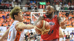 [OSEN=울산, 곽영래 기자] 21일 오후 울산 동천체육관에서 '2018-2019 SKT 5GX KBL 프로농구' 챔피언결정전 5차전 울산 현대모비스와 인천 전자랜드의 경기가 열렸다.4쿼터 현대모비스 문태종과 전자랜드 정효근이 파울을 범하고 있다. /