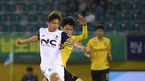 [OSEN=광양, 곽영래 기자] 22일 오후 전남 광양시 광양축구전용구장에서 '하나원큐 2019 K리즈 2' 전남 드래곤즈와 서울 이랜드 FC의 경기가 열렸다.전반 이랜드 김민균이 공을 뺏어내고 있다. / youngrae@osen.co.kr