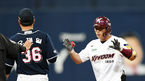 [OSEN=고척, 박재만 기자] 23일 오후 고척 스카이돔에서 '2019 신한은행 MY CAR KBO리그' 키움 히어로즈와 두산 베어스의 경기가 열렸다.5회초 1사 두산 페르난데스가 솔로포를 날린 뒤 김민재 코치와 하이파이브를 하고 있다. /pjmpp@osen