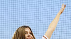 [OSEN=대전, 민경훈 기자] 24일 오후 한화생명 이글스파크에서 '2019 신한은행 MY CAR KBO리그' 한화 이글스와 롯데 자이언츠의 경기가 열렸다.모델출신 한화 치어리더 도리스 롤랑(Doris Roland)이 휴식을 취하며 취재진에게 사인을 보내
