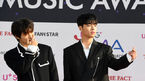 [OSEN=인천, 지형준 기자] 24일 오후 인천 남동체육관에서 U+5G 더팩트 뮤직 어워즈 레드카펫 행사가 열렸다.가수 아이콘 비아이, 구준회가 포토타임을 하고 있다. /jpnews@osen.co.kr