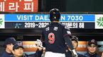 [OSEN=대전, 민경훈 기자] 24일 오후 한화생명 이글스파크에서 '2019 신한은행 MY CAR KBO리그' 한화 이글스와 롯데 자이언츠의 경기가 열렸다.4회말 2사 주자 1,3루 롯데 아수아헤가 우익수 앞 1타점 적시타때 홈을 밟은 정훈이 덕아웃