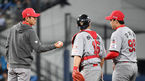 [OSEN=대구, 곽영래 기자] 24일 오후 대구 삼성라이온즈파크에서 ‘2019 신한은행 MY CAR KBO리그' 삼성 라이온즈와 SK 와이번스의 경기가 열렸다.4회말 1사 만루 SK 박경완 코치가 다익손에 이어 마운드에 오르는 강지광에게 공을 건