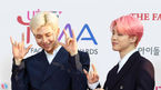 [OSEN=인천, 지형준 기자] 24일 오후 인천 남동체육관에서 U+5G 더팩트 뮤직 어워즈 레드카펫 행사가 열렸다.가수 방탄소년단 RM, 지민이 참석해 포토타임을 하고 있다. /jpnews@osen.co.kr
