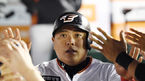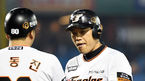 [OSEN=대전, 민경훈 기자] 24일 오후 한화생명 이글스파크에서 '2019 신한은행 MY CAR KBO리그' 한화 이글스와 롯데 자이언츠의 경기가 열렸다.4회말 2사 주자 3루 한화 최진행의 중견수 앞 동점 1타점 적시타때 홈을 밟은 김태균이 덕아