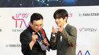 [OSEN=인천, 지형준 기자] 24일 오후 인천 남동체육관에서 U+5G 더팩트 뮤직 어워즈 레드카펫 행사가 열렸다.가수 방탄소년단 뷔가 MC 딩동과 포토타임을 하고 있다. /jpnews@osen.co.kr