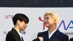 [OSEN=인천, 지형준 기자] 24일 오후 인천 남동체육관에서 U+5G 더팩트 뮤직 어워즈 레드카펫 행사가 열렸다.가수 방탄소년단 정국, RM이 참석해 포토타임을 하고 있다. /jpnews@osen.co.kr
