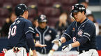 [OSEN=고척, 박재만 기자] 25일 오후 고척 스카이돔에서 '2019 신한은행 MY CAR KBO리그' 키움 히어로즈와 두산 베어스의 경기가 열렸다.2회초 무사 두산 오재일이 솔로포를 날린 뒤 김민재 코치와 하이파이브를 하고 있다. /pjmpp@osen.co.k