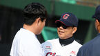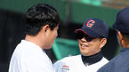 [OSEN=부산, 이동해 기자] 1일 오후 부산 사직구장에서 '2019 신한은행 MY CAR KBO리그' 롯데 자이언츠와 NC 다이노스의 경기가 열릴 예정인 가운데 그라운드 훈련이 진행됐다.롯데 양상문 감독이 NC 양의지와 이야기 나누며 미소 짓고