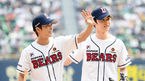 [OSEN=잠실, 이동해 기자] 4일 오후 서울 잠실야구장에서 ‘2019신한은행 MY CAR KBO리그' 두산 베어스와 LG 트윈스의 경기가 열렸다.시타-시구 마친 뉴이스트 JR-황민현이 어깨동무를 하고 있다. / eastsea@osen.co.kr