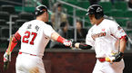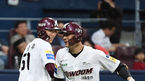 [OSEN=고척, 곽영래 기자] 8일 오후 고척 스카이돔에서 '2019 신한은행 MY CAR KBO리그' 키움 히어로즈와 LG 트윈스의 경기가 열렸다.8회말 2사 3루 키움 김하성이 투런 홈런을 때린 뒤 이정후와 기뻐하고 있다. / youngrae@osen.co.kr
