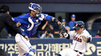 [OSEN=잠실, 최규한 기자] 14일 서울 잠실야구장에서 ’2019 신한은행 MY CAR KBO리그' 두산 베어스와 삼성 라이온즈의 경기가 열렸다.2회말 1사 1, 3루 상황 두산 정진호의 좌익수 플라이 때 홈으로 태그업한 박세혁이 삼성 포수 강