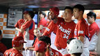 [OSEN=대전, 지형준 기자] 17일 오후 대전 한화생명이글스파크에서 ’2019 신한은행 MY CAR KBO 리그’ 한화 이글스와 KIA 타이거즈의 경기가 열렸다.8회초 KIA 최형우와 이명기가 더그아웃에서 경기를 지켜보며 이야기를 나누고