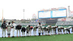 [OSEN=인천, 이대선 기자] 19일 오후 인천 SK행복드림구장에서 열릴 예정이었던 두산 베어스와 SK 와이번스의 경기가 비로 취소됐다.비로 경기가 취소되자 SK 선수들이 관중석을 향해 인사를 하고 있다. /sunday@osen.co.kr