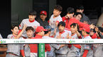 [OSEN=잠실, 이대선 기자] 21일 오후 서울 잠실야구장에서 ‘2019년 신한은행 마이카 KBO리그’ LG 트윈스와 SK 와이번스의 경기가 열렸다.3회초 2사 1,2루에서 SK 고종욱의 적시타 때 2루주자 최정이 득점을 올리고 더그아웃에서