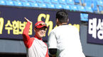 [OSEN=잠실, 이대선 기자] 21일 오후 서울 잠실야구장에서 ‘2019년 신한은행 마이카 KBO리그’ LG 트윈스와 SK 와이번스의 경기가 진행될 예정이다.경기에 앞서 SK 정수성 코치가 LG 김현수와 인사를 나누고 있다. /sunday@osen.co.kr
