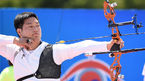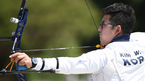 [OSEN=곽영래 기자] 22일 오전 서울 올림픽공원 평화의문 광장에서 양궁 국가대표 특별 평가전이 진행됐다.김우진이 활 시위를 당기고 있다. /youngrae@osen.co.kr
