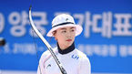 [OSEN=곽영래 기자] 22일 오전 서울 올림픽공원 평화의문 광장에서 양궁 국가대표 특별 평가전이 진행됐다.안산이 활 시위를 당기고 있다. /youngrae@osen.co.kr