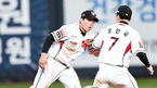 [OSEN=수원, 박재만 기자] 22일 오후 경기도 수원kt위즈파크에서 '2019 신한은행 MY CAR KBO리그' kt 위즈와 두산 베어스의 경기가 열렸다.7회초 2사 1루 두산 류지혁의 타구를 kt 박경수가 아웃 시킨 뒤 강민국과 하이파이브를 하고 있다.