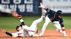 [OSEN=수원, 박재만 기자] 22일 오후 경기도 수원kt위즈파크에서 '2019 신한은행 MY CAR KBO리그' kt 위즈와 두산 베어스의 경기가 열렸다.7회말 1사 1루 두산 류지혁이 2루로 도루를 시도한 kt 송민섭을 태그아웃 시키고 있다. /pjmpp@osen.co