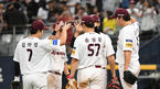 [OSEN=고척, 최규한 기자] 22일 오후 서울 고척 스카이돔에서 열린 ’2019 신한은행 MY CAR KBO리그' 키움 히어로즈와 NC 다이노스의 경기, 홈 팀 키움이 4-2로 승리를 거두며 전날 패배를 설욕했다.승리를 거둔 키움 선수들이 세리머