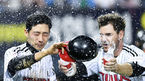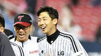 [OSEN=잠실, 박재만 기자] LG 트윈스가 김현수의 극적인 끝내기로 시리즈 스윕을 피했다.LG는 23일 서울 잠실구장에서 열린 SK 와이번스와의 홈경기에서 2-1 끝내기 승리를 거뒀다.경기에서 승리한 LG 류중일 감독 이우찬과 하아피아
