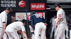 [OSEN=수원, 이동해 기자] 23일 오후 수원 케이티위즈파크에서 '2019년 신한은행 마이카 KBO리그' KT 위즈와 두산 베어스의 경기가 열렸다.9회초 1사 2,3루 두산 류지혁이 KT 전유수의 투구에 맞은 후 교체되고 있다. 타석 찾아가 사과하