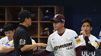 [OSEN=고척, 곽영래 기자] 23일 오후 서울 고척스카이돔에서 '2019 신한은행 MY CAR KBO리그' 키움 히어로즈와 NC 다이노스의 경기가 열렸다.7회말 2사 키움 장정석 감독이 1루심과 이야기를 나누고 있다. / youngrae@osen.co.kr
