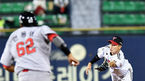 [OSEN=잠실, 박재만 기자] 23일 오후 서울 잠실야구장에서 ‘2019 신한은행 MY CAR KBO리그’ LG 트윈스와 SK 와이번스의 경기가 열렸다.5회초 2사 만루 SK 배영섭의 타구를 LG 김민재가 몸을 날려 잡은 뒤 2루로 토스하고 있다. /pjmp