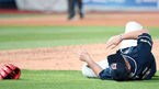 [OSEN=수원, 이동해 기자] 23일 오후 수원 케이티위즈파크에서 '2019년 신한은행 마이카 KBO리그' KT 위즈와 두산 베어스의 경기가 열렸다.6회말 KT 선두타자 강백호의 강습타구에 맞은 두산 선발투수 유희관이 마운드에 누워 고통을