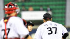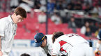 [OSEN=수원, 이동해 기자] 23일 오후 수원 케이티위즈파크에서 '2019년 신한은행 마이카 KBO리그' KT 위즈와 두산 베어스의 경기가 열렸다.6회말 KT 선두타자 강백호의 강습타구에 맞은 두산 선발투수 유희관이 발등-발목에 테이핑 후