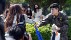 [OSEN=계룡대, 이동해 기자] 23일 오전 배우 강하늘이 대전 계룡대 근무 지원단 육군 헌병대에서 전역했다.배우 강하늘이 팬들의 선물에 고마움을 표하고 있다. / eastsea@osen.co.kr