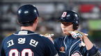 [OSEN=수원, 이동해 기자] 23일 오후 수원 케이티위즈파크에서 '2019년 신한은행 마이카 KBO리그' KT 위즈와 두산 베어스의 경기가 열렸다.9회초 1사 만루찬스 두산 대타 이유찬이 1타점 적시타를 뽑아낸 후 고영민 코치와 하이파이브