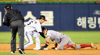 [OSEN=수원, 이동해 기자] 23일 오후 수원 케이티위즈파크에서 '2019년 신한은행 마이카 KBO리그' KT 위즈와 두산 베어스의 경기가 열렸다.9회말 무사 1루 KT 로하스가 넘어지며 타격하고 있다. 로하스의 타구는 우익수 플라이 아웃됐