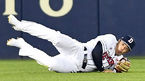 [OSEN=잠실, 박재만 기자] 24일 오후 서울 잠실야구장에서 ‘2019 신한은행 MY CAR KBO리그’ 두산 베어스와 한화 이글스의 경기가 열렸다.4회초 무사 1루 한화 김태균의 안타성 타구를 두산 김재환이 몸을 날려 잡아내고 있다. /p