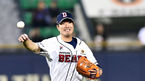 [OSEN=잠실, 박재만 기자] 24일 오후 서울 잠실야구장에서 ‘2019 신한은행 MY CAR KBO리그’ 두산 베어스와 한화 이글스의 경기가 열렸다.9회초 2사 3루 한화 양성우의 타구를 두산 김재호가 잡아 1루로 송구해 아웃시키고 있다.
