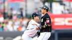[OSEN=잠실, 최규한 기자] 25일 오후 서울 잠실야구장에서 ’2019 신한은행 MY CAR KBO리그' 두산 베어스와 한화 이글스의 경기가 열렸다.4회말 2사 1루 상황 두산 박건우가 추격의 좌월 투런포를 날리고 김태형 감독의 축하를 받고