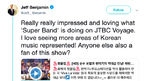 [OSEN=심언경 기자] 미국 음악 매체 빌보드의 칼럼니스트인 제프 벤자민이 JTBC '슈퍼밴드' 팬이라고 밝혔다.제프 벤자민은 24일 트위터를 통해''JTBC 슈퍼밴드'가 하고 있는 것에많이 감동했고 정말 좋아한다. 한국 음악의 많은 장