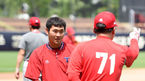 [OSEN=광주, 이대선 기자] 25일 오후 광주기아챔피언스필드에서 ‘2019년 신한은행 마이카 KBO리그’ KIA 타이거즈와 kt wiz의 경기가 열릴 예정이다.경기에 앞서 KIA 박흥식 감독대행이 관계자와 이야기를 나누고 있다. /sunday@ose