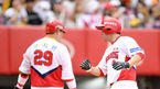 [OSEN=광주, 이대선 기자] 26일 오후 광주기아챔피언스필드에서 ‘2019년 신한은행 마이카 KBO리그’ KIA 타이거즈와 kt wiz의 경기가 열렸다.1회말 무사 1,3루에서 kt의 포일을 틈 타 홈을 밟은 안치홍이 더그아웃에서 박흥식 감