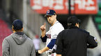 [OSEN=잠실, 박재만 기자] 28일 오후 서울 잠실야구장에서 ‘2019 신한은행 MY CAR KBO리그’ 두산 베어스와 삼성 라이온즈의 경기가 열렸다.4회초 2사 두산 선발투수 린드블럼이 손가락 통증호소 후 연습 투구를 하려고 하고 있