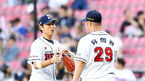 [OSEN=잠실, 박재만 기자] 29일 오후 서울 잠실야구장에서 ‘2019 신한은행 MY CAR KBO리그’ 두산 베어스와 삼성 라이온즈의 경기가 열렸다.1회초 두산 선발투수 유희관이 이닝을 마친 뒤 호수비를 보인 정수빈과 하이파이브를